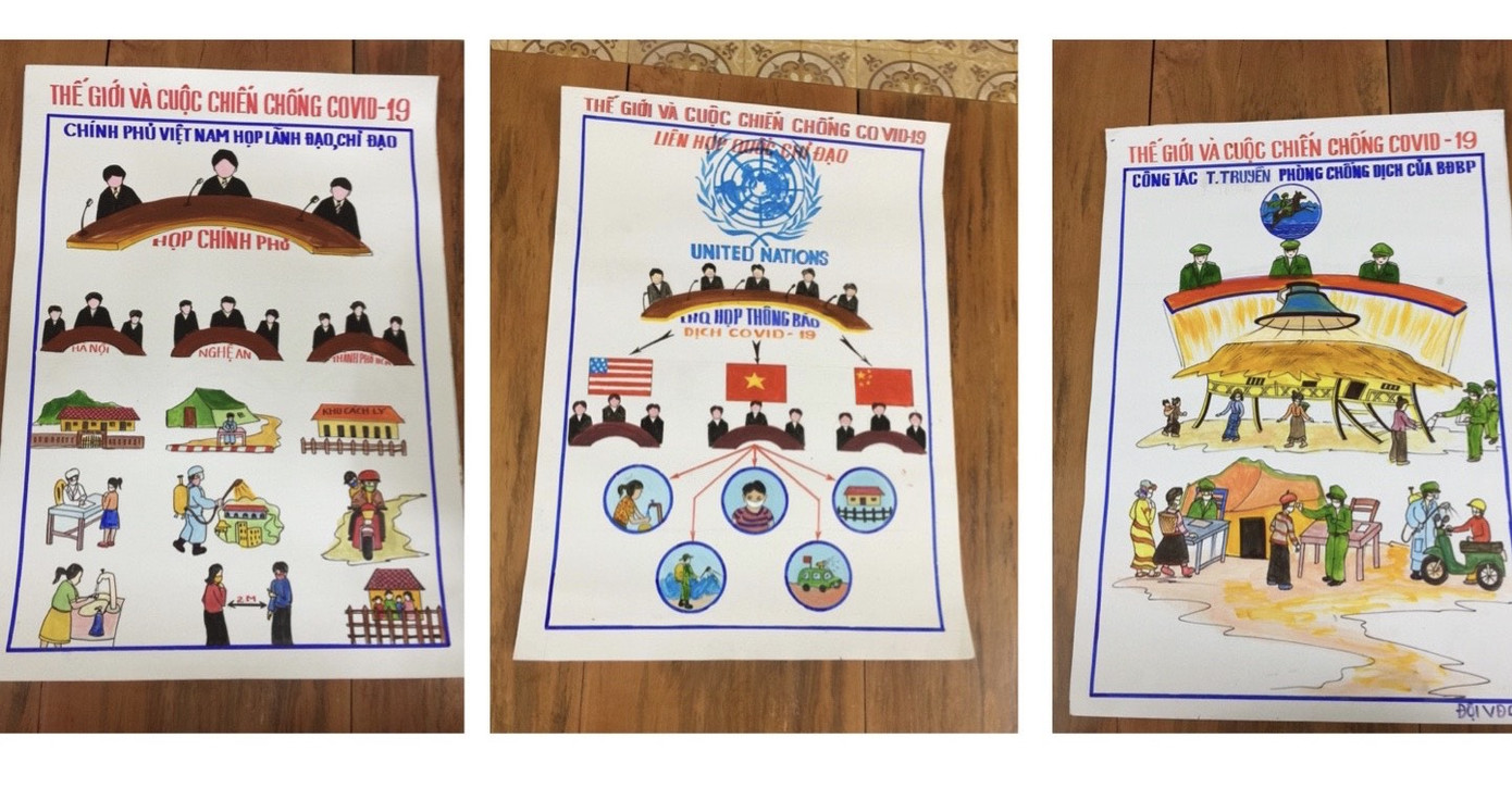 Các tác phẩm dự thi sau đó được trưng bày trong đơn vị, tại các nhà trường, trung tâm xã và tại nhà các trưởng bản góp phần giúp các em học sinh cũng như người dân hiểu rõ hơn về dịch COVID-19 và các biện pháp đảm bảo, chăm sóc sức khỏe trong mùa dịch.
