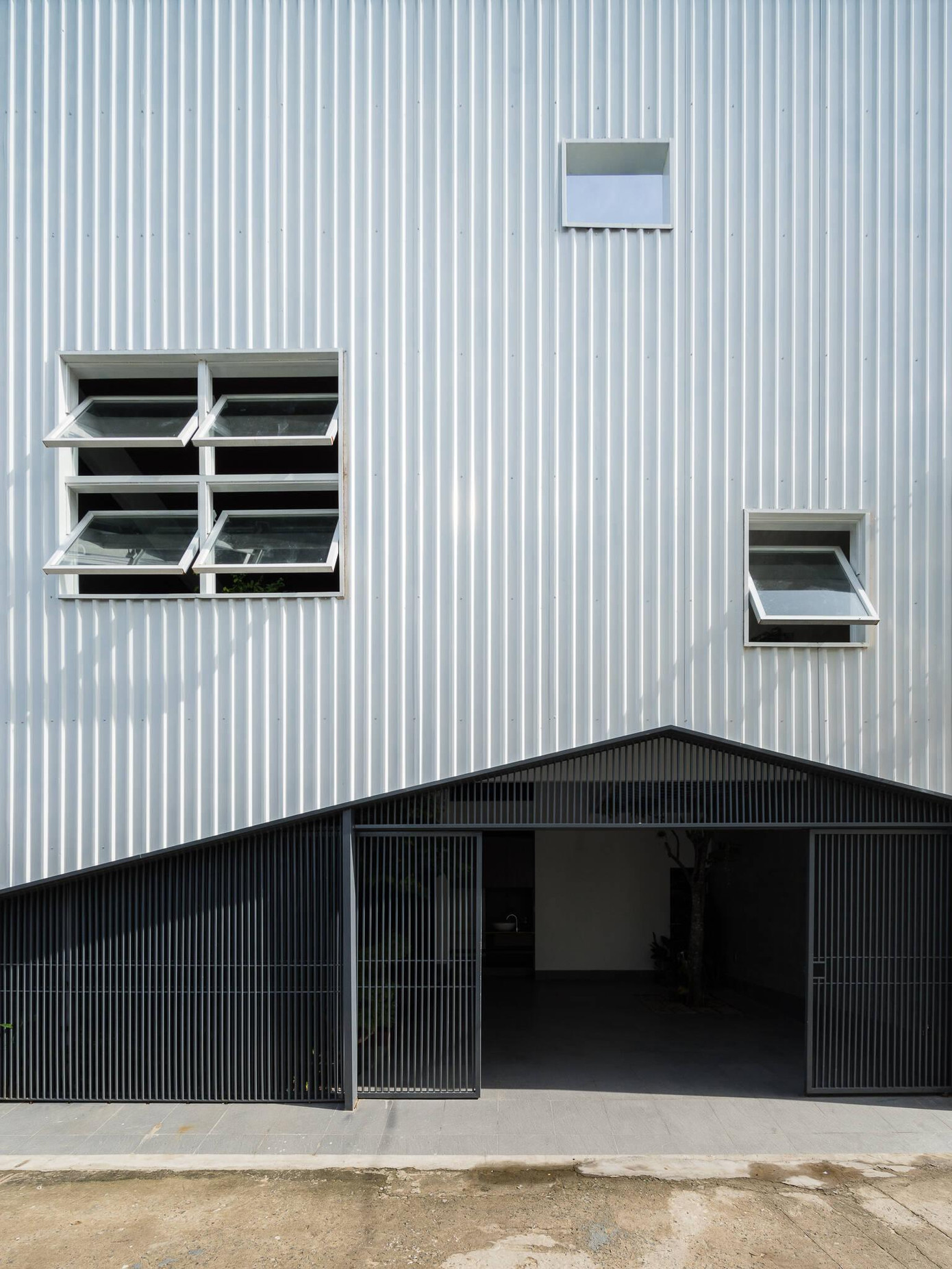 | Do nguồn tài chính có hạn nên gia chủ muốn tiết kiệm tối đa chi phí xây dựng để tập trung vào nội thất. Vì thế các kiến trúc sư đề xuất việc bao bọc ngôi nhà bằng tôn với thiết kế đơn giản. |