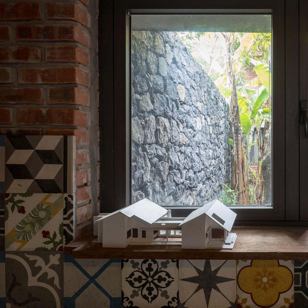 | Công trình rộng 180m2 được xây dựng theo kiểu nhà cấp 4 với cao độ được tăng dần khi đi từ ngoài vào trong. Sự độc đáo của ngôi nhà là toàn bộ các bức tường đều xây bằng gạch đỏ không trát, mái lợp ngói đỏ đậm chất miền quê Bắc Bộ. |