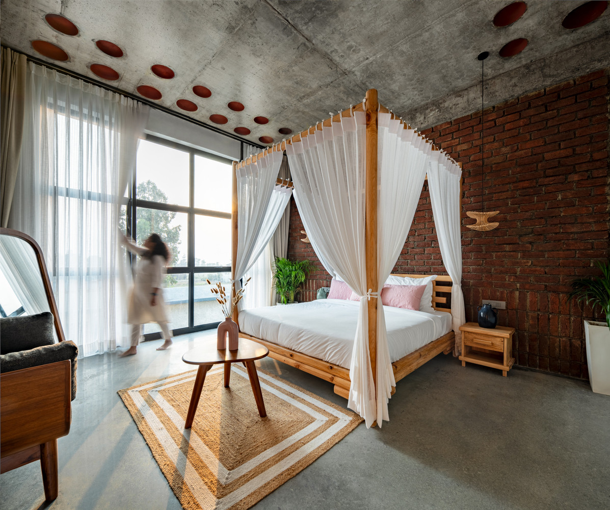 | Kiến trúc của ngôi nhà tôn vinh vẻ đẹp vượt thời gian và cảm xúc địa phương mộc mạc. Gạch trần và những vòm cong uốn lượn định hình nhịp điệu không gian, mang đến một trải nghiệm mới nhưng cũng rất gần gũi. |