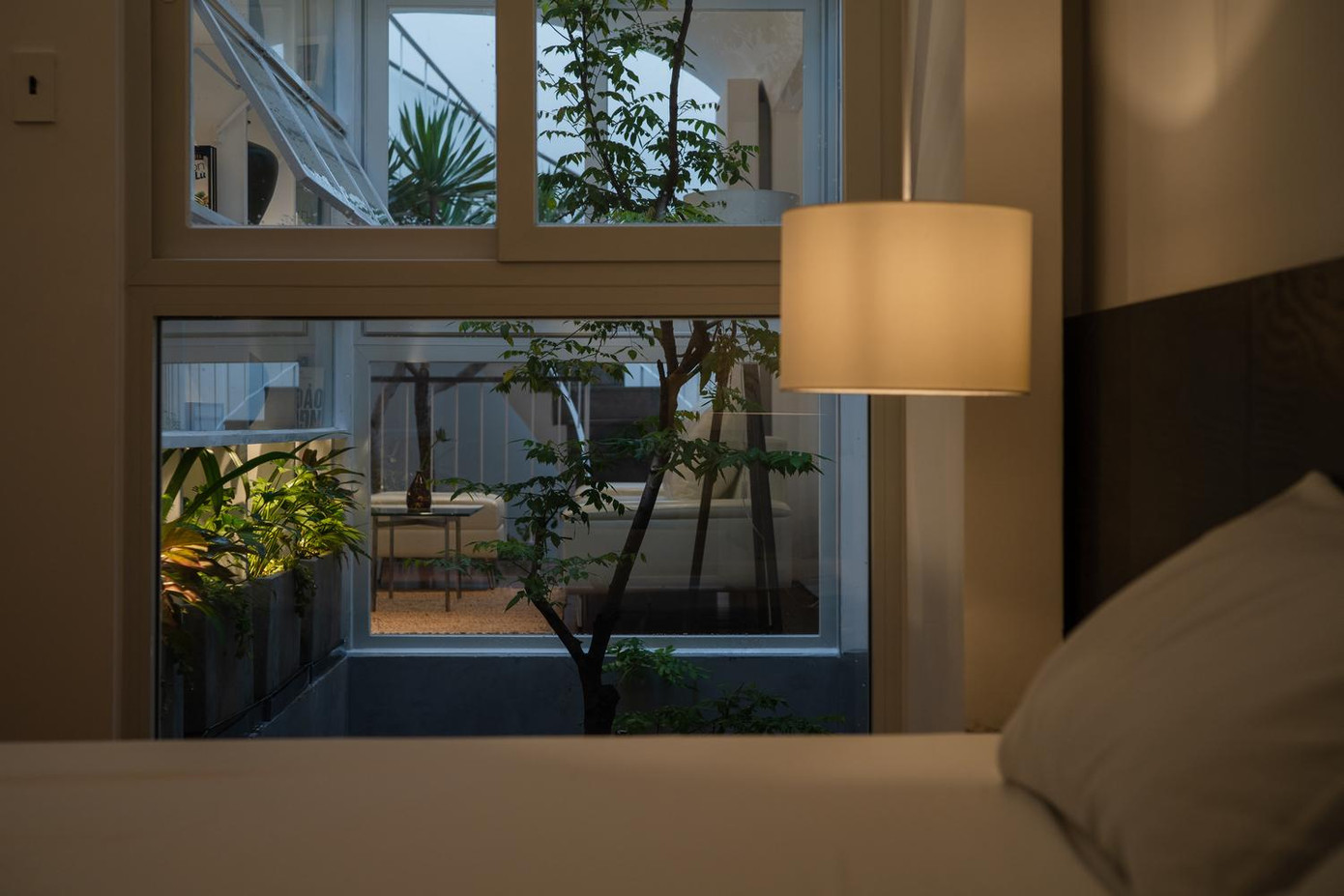 | Tầng 3 là không gian phòng ngủ. Nhờ việc lấy giếng trời làm nguồn sáng, sử dụng kính thay tường mà tất cả các không gian trong nhà đều sáng, thoáng và tràn đầy sinh khí trong lành từ khu vườn giữa nhà. |