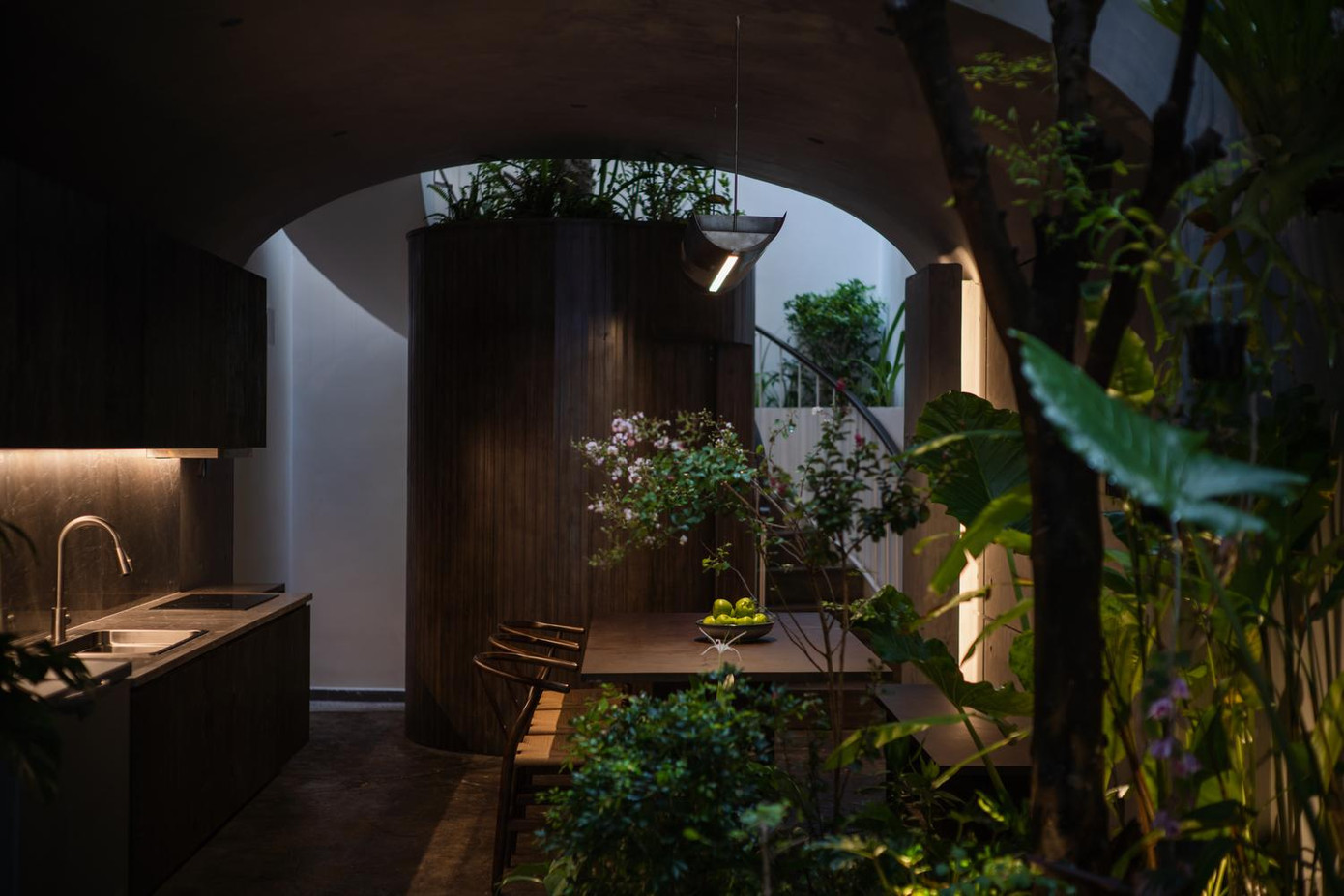 | Theo KTS, cấu trúc hình mái vòm là điểm nổi bật của công trình. Với cấu trúc này, họ muốn tạo ra những không gian nguyên sơ nhất có thể, để ngôi nhà có được bầu không khí yên tĩnh và có được cảm giác “tĩnh” giữa phố xá đông đúc. |