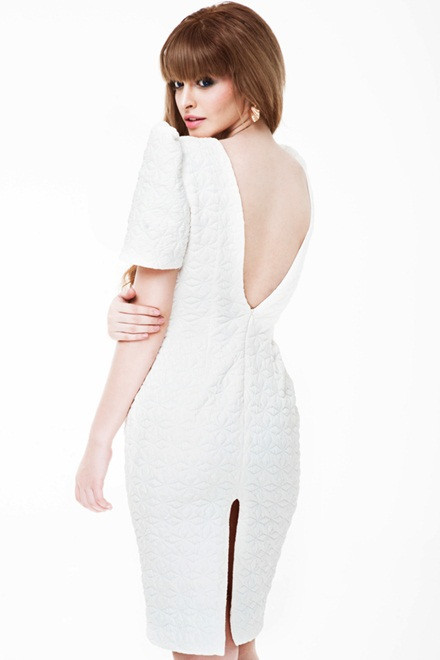 Vải xốp dập họa tiết mang lại phom dáng đứng, đẹp cho các bộ váy tối giản.