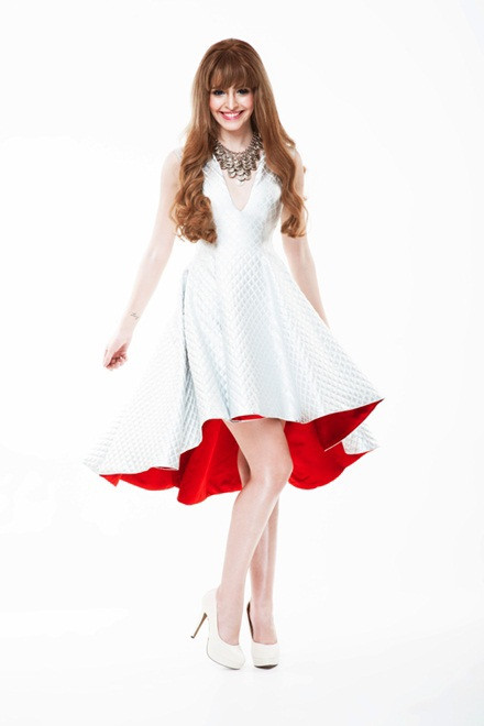 Xuất hiện trong một hình ảnh mới ngoan hiền nhưng vẫn không kém phần gợi cảm, Andrea diện những xu hướng đang hot trong mùa lễ hội cuối năm. Đó là trang phục ánh kim, dạng váy mullet nữ tính và áo xẻ ngực sâu gợi cảm.