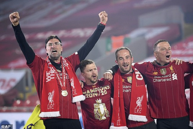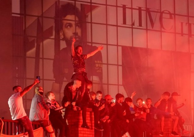 Vì đại dịch Covid-19, CĐV Liverpool không được phép vào sân chứng kiến khoảnh khắc lịch sử. Tuy vậy, lễ đăng quang của thầy trò Jurgen Klopp vẫn chứa đầy cảm xúc. Nó diễn ra trên nền nhạc sôi động và màn bắn pháo hoa hoành tráng. Bên ngoài sân, CĐV Liverpool cũng đốt pháo ăn mừng cuồng nhiệt.