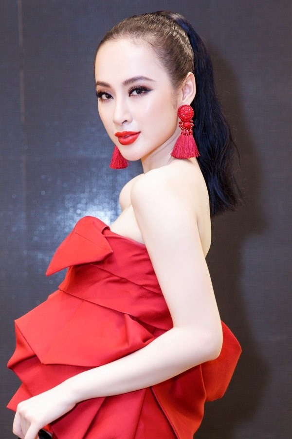 Cô thu hút sự chú ý khi bước xuống với cả "cây" đỏ.