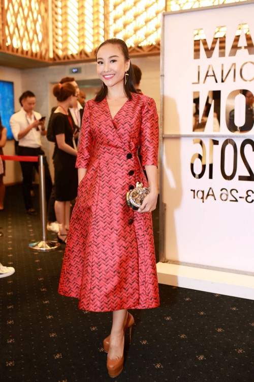Cũng chọn một chiếc đầm của nhà thiết kế này, Đoan Trang lại gây ấn tượng bằng sắc đỏ nổi bật.