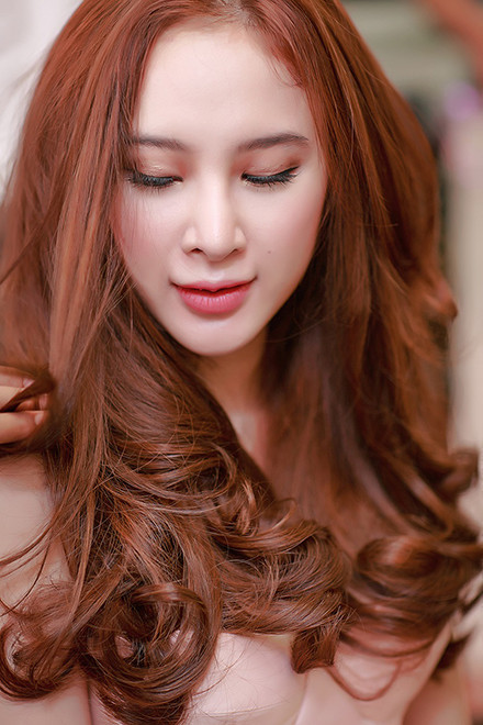 Á quân "Bước nhảy Hoàn vũ 2015" chọn màu tóc nâu đỏ, được làm xoăn những lọn phía đuôi.