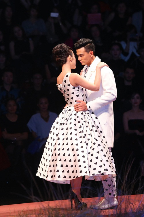 Tối 11/12, Đỗ Mạnh Cường ra mắt bộ sưu tập Love tại Hà Nội. Show diễn gây phấn khích với phần mở đầu lãng mạn của cặp nàng thơ - chàng thơ mới của nhà thiết kế. Trên nền nhạc Love Story, Angela Phương Trinh và Lê Xuân Tiền bước ra từ ngôi nhà được dựng trên sàn catwalk.