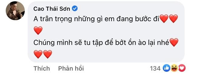 Cao Thái Sơn cũng ngay lập tức bình luận dưới bài đăng của người đẹp 9X: "Anh trân trọng những gì em đã bước đi, chúng mình sẽ tu tập để bớt ồn ào lại nhé."