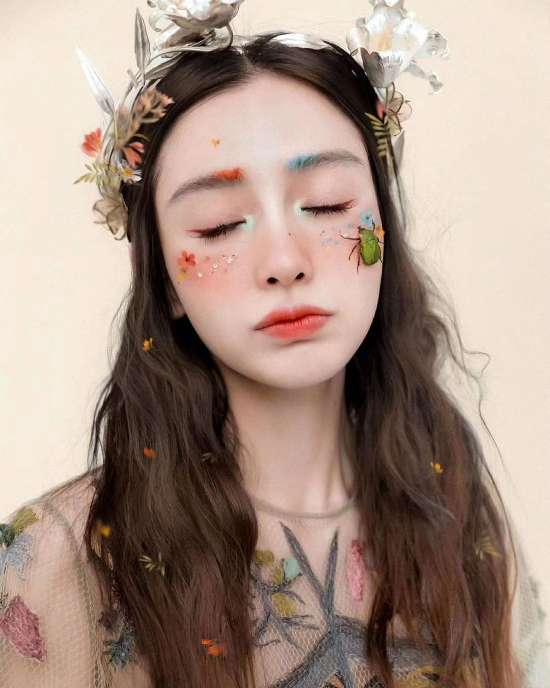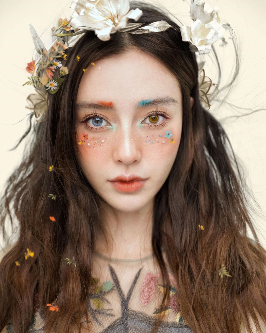 Angelababy vốn có nhan sắc lai Tây nên khi trang điểm độc đáo thế này, trông cô càng xinh đẹp bội phần như công chúa bước ra từ cổ tích.