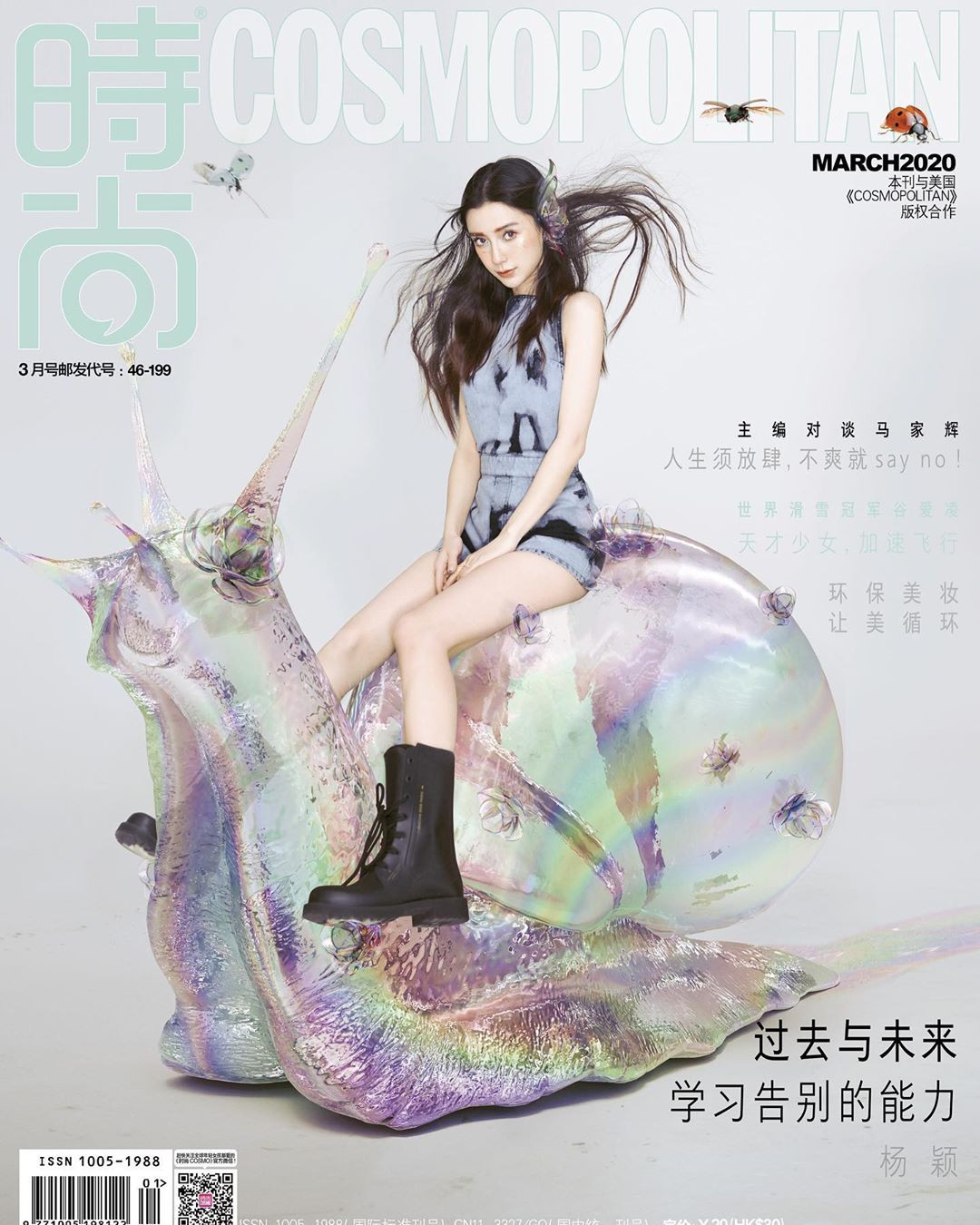 Angelababy cưỡi ốc sên đầy ấn tượng trên bìa tạp chí Cosmopolitan số tháng 3.
