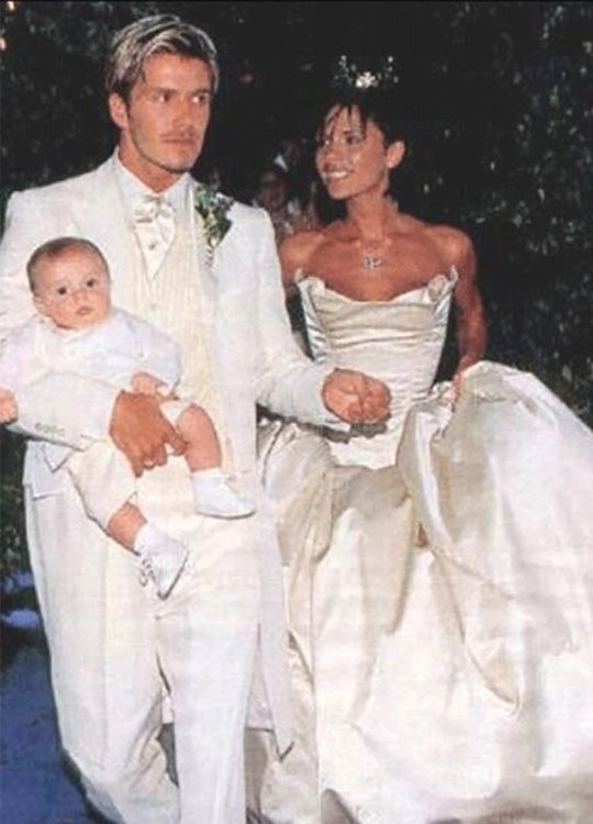 Ngắm nhìn bức ảnh 3 người nổi tiếng trong một khung hình, các fan lật lại ảnh cưới của vợ chồng ông bà Becks cách đây 20 năm. Cậu bé Brooklyn chào đời 4 tháng trước khi bố mẹ tổ chức hôn lễ và được tham dự ngày cưới của bố mẹ mình.