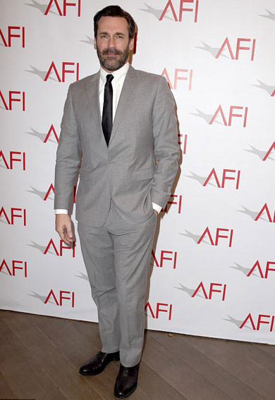 Angelina Jolie diện blazer đen của Saint Laurent kết hợp quần skinny và giày đồng màu. Brad Pitt ăn vận cùng tông theo phong cách phóng khoáng.