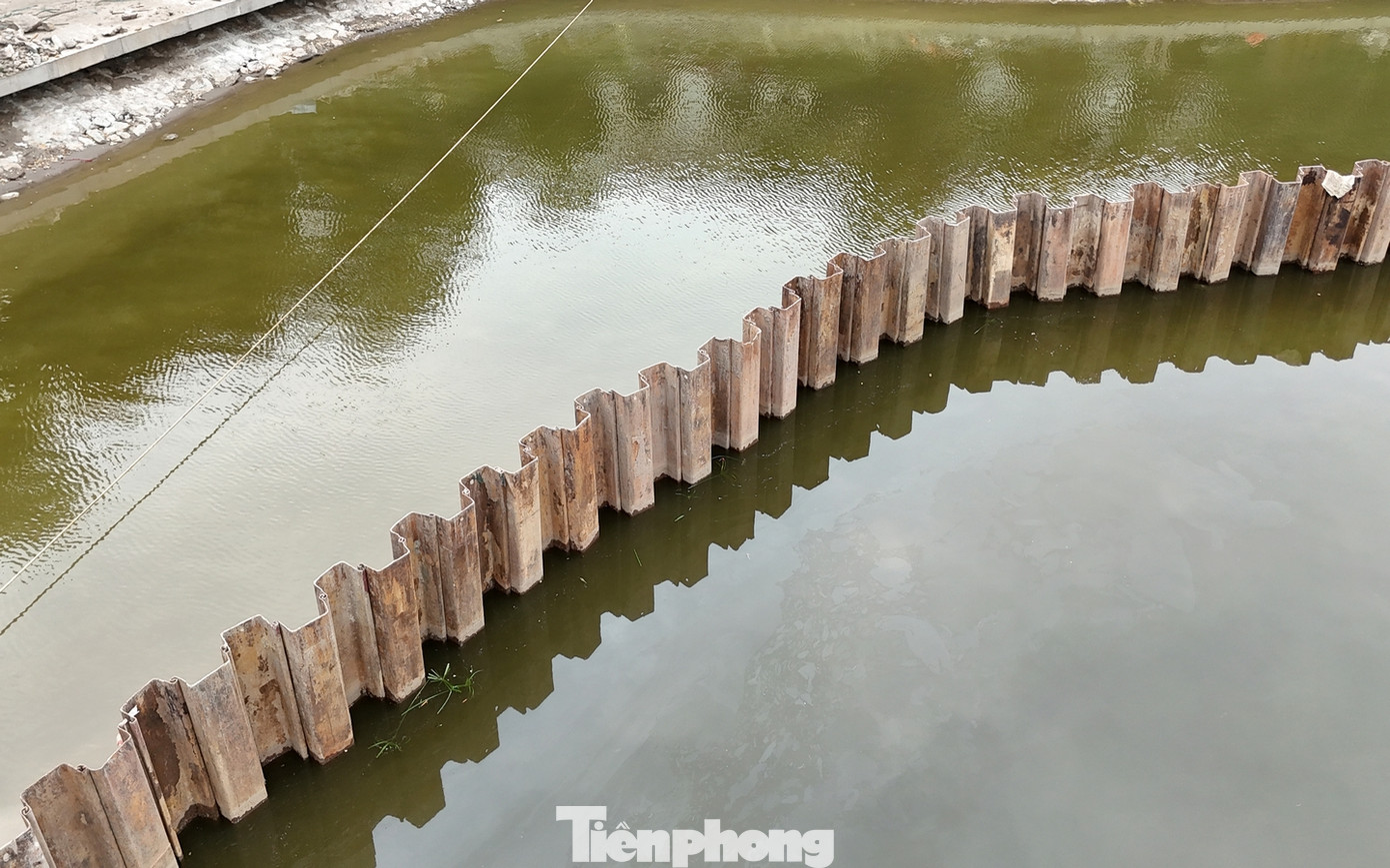 | Bên cạnh đó phía đơn vị thi công đã đóng hơn 500 cọc bê tông xung quanh hồ để thi công phần đường dạo quanh hồ. |