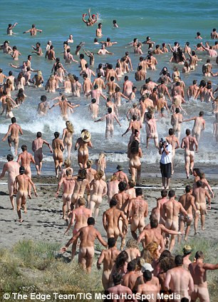 Theo Dailymail hôm 7/1, 745 người khỏa thân bơi lội ở bãi biển Gisborne, đông bắc New Zealand để lập kỉ lục thế giới Guinness.