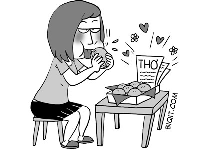 Biết mình thích ăn đồ ngọt, anh ấy thường gửi bánh pía từ Sài Gòn ra cho mình. Kèm theo bánh luôn có mấy bài thơ tình do anh ấy ứng tác (nói nhỏ: thơ rất dở mà lại toàn lấy mình làm nhân vật trữ tình). Làm cách nào để vẫn có bánh ăn mà không phải đọc thơ? flow876…@