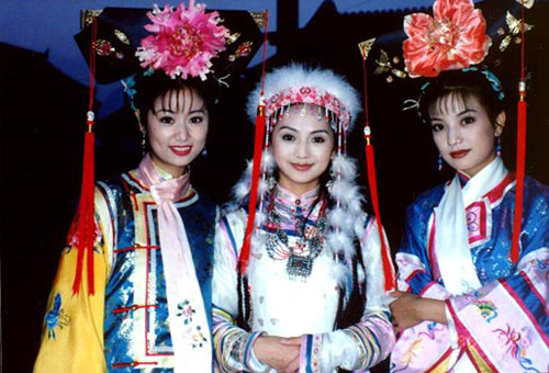 Lâm Tâm Như, diễn viên quá cố Lưu Đan, Triệu Vy (từ trái sang). Bức ảnh khiến không ít người nuối tiếc cho nhan sắc nàng Hàm Hương của Hoàn Châu cách cách.