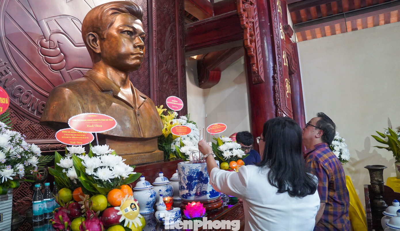 | Bí thư thứ nhất T.Ư Đoàn Bùi Quang Huy và Bí thư Tỉnh ủy Hà Tĩnh Hoàng Trung Dũng cùng đoàn sau đó di chuyển về nhà thờ anh Lý Tự Trọng, đối diện Khu tưởng niệm để dâng hương. |