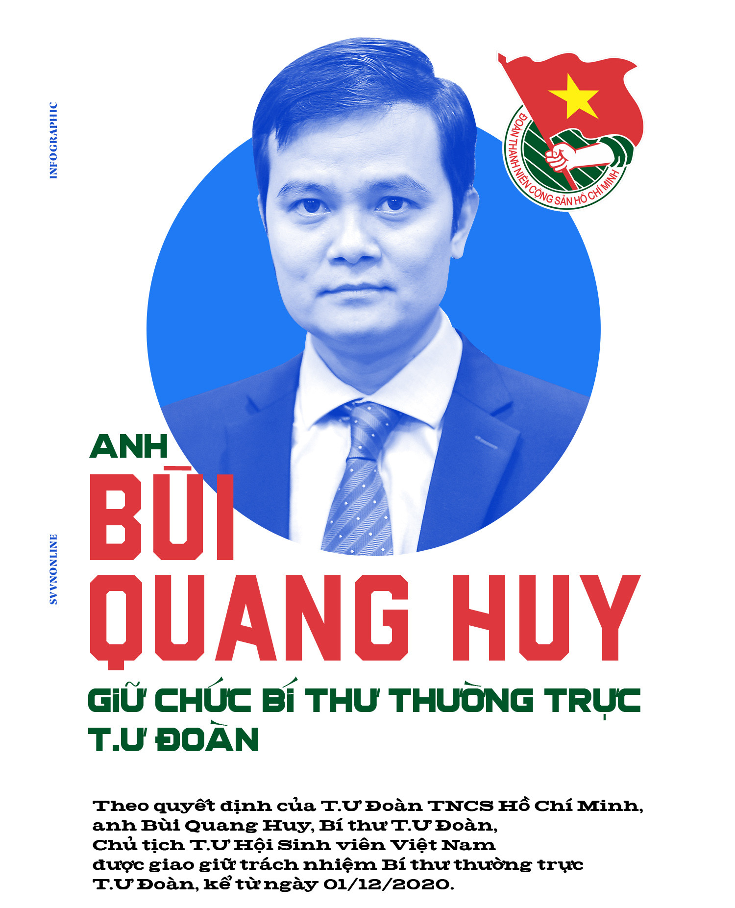 SVO - Theo quyết định của T.Ư Đoàn TNCS Hồ Chí Minh, anh Bùi Quang Huy, Bí thư T.Ư Đoàn, Chủ tịch T.Ư Hội Sinh viên Việt Nam được giao giữ trách nhiệm Bí thư thường trực T.Ư Đoàn, kể từ ngày 01/12/2020.