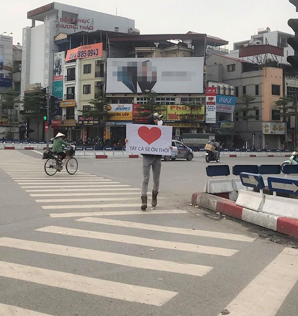 Mới đây, hình ảnh một nam thanh niên người nước ngoài cầm tấm bảng vẽ hình trái tim lớn màu đỏ, ghi dòng chữ: "Tất cả sẽ ổn thôi" đứng ở đường phố Hà Nội được lan truyền mạnh trên nhiều diễn đàn.