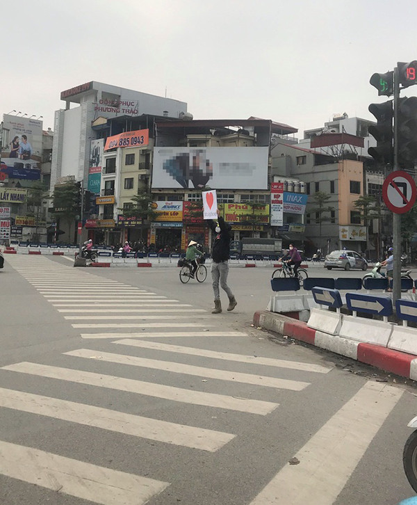 Hải Yến kể lại: "Lúc đó mình đến nơi thấy anh ấy đứng ở 1 bên đường. Khi đèn chuyển đỏ, anh Tây cầm tấm bảng đi từ bên này đường sang bên kia, vừa đi vừa giơ cao, lắc tấm bảng cho mọi người thấy. Lúc mình giơ điện thoại lên chụp, anh ấy dù đi gần hết đường rồi nhưng vẫn cố giơ bảng hướng về phía mọi người".