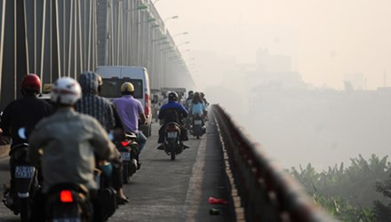 Tầm nhìn của người dân bị hạn chế bởi lớp sương mù xuất hiện vào sáng nay trên một số cây cầu ở Hà Nội. Ảnh: VnExpress.
