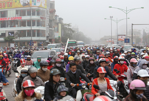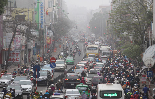 Đường Nguyễn Lương Bằng trong trời mù sương.