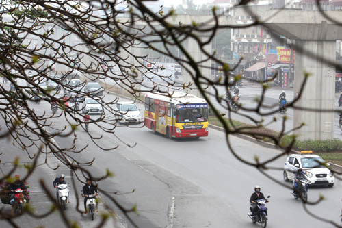 Sương mù dày đặc trên tuyến đường Nguyễn Trãi – Ngã Tư Sở.