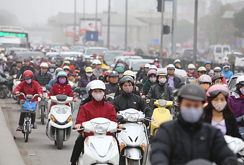 TPO - Sáng nay 3/3, Thủ đô Hà Nội bị bao phủ bởi những lớp sương mù dày đặc khiến tầm nhìn của người đi đường trong giờ đi làm bị hạn chế.