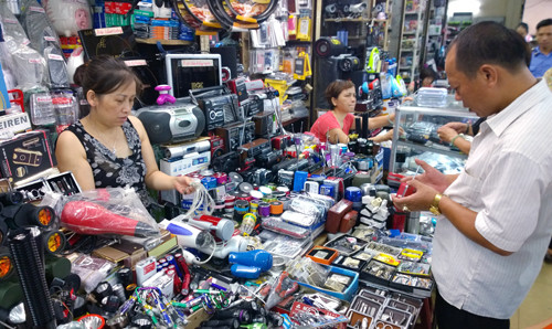 Hàng điện tử là một trong những sản phẩm được bày bán nhiều tại chợ Đồng Xuân.