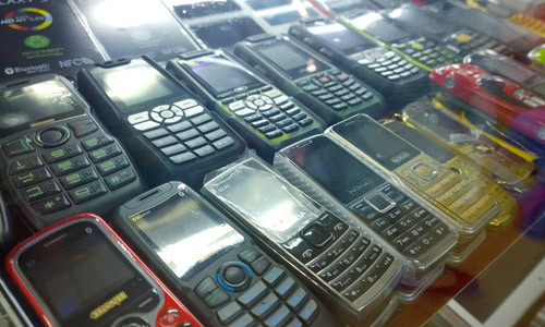 Các loại điện thoại mang nhãn hiệu nổi tiếng như Nokia, Samsung Galaxy S4... được bày bán tràn lan.