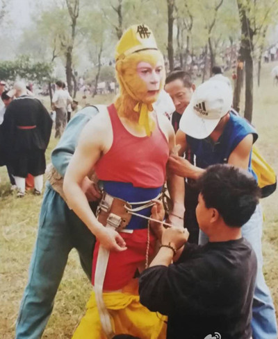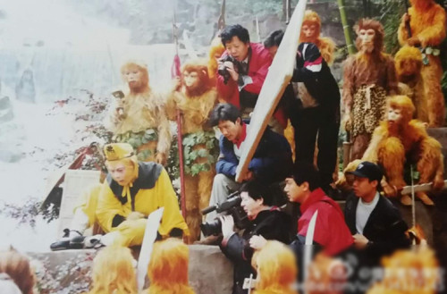 Hiện nay nhiều phim làm sơ sài, cảnh đơn giản cũng dùng kỹ xảo. Còn thời đó, diễn viên tự đóng hầu hết cảnh. Trong ảnh, thầy trò Đường Tăng lội sông còn Ngộ Không được ngồi trên chiếc thang để quay cảnh bay ở trên. Ảnh được nhà quay phim Trương Bảo An chia sẻ trên trang cá nhân.