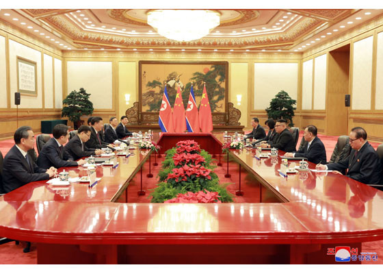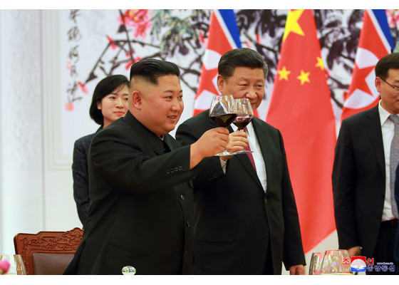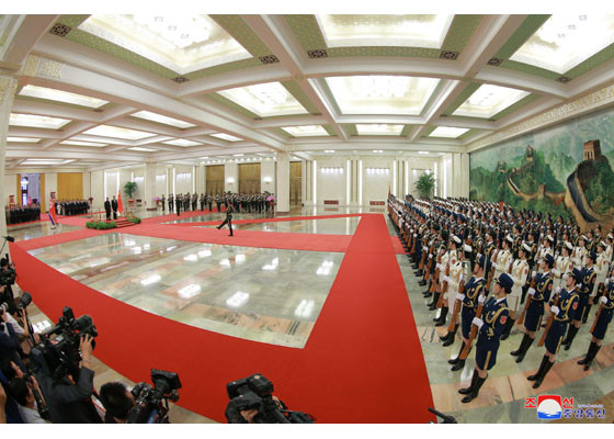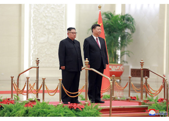 Hãng thông tấn trung ương Triều Tiên (KCNA) dẫn lời ông Kim cho biết Bình Nhưỡng sẽ tiếp tục hợp tác chặt chẽ với Bắc Kinh “trong quá trình xây dựng tương lai mới trên bán đảo Triều Tiên và trong khu vực”, đồng thời sẽ “cố gắng hết sức để bảo vệ nền hoà bình đích thực trong tương lai”. Ảnh: Rodong Sinmun