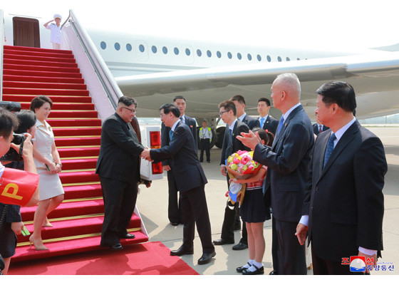 Sáng 19/6, phi cơ chở ông Kim Jong-un cùng phu nhân Ri Sol-ju cất cánh từ sân bay Bình Nhưỡng và hạ cánh xuống sân bay Bắc Kinh (Trung Quốc), bắt đầu chuyến thăm kéo dài 2 ngày của nhà lãnh đạo Triều Tiên. Ảnh: Rodong Sinmun