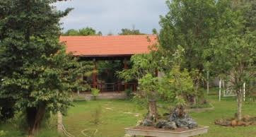 Quần thể nhà vườn trên gồm ngôi nhà chính là một căn nhà vườn lợp ngói kiểu mái Thái rộng hàng trăm mét vuông. Bên cánh phải là căn nhà gỗ 3 gian thiết kế mở theo kiểu nhà mát. Bên cánh trái là một nhà lục giác. Toàn bộ diện tích đất còn lại được trồng cỏ, trồng cây cảnh và đường đi lát đá. Bao quanh khu nhà là tường rào cao hơn 3 mét, trên đầu tường giăng dây thép gai và bộ cổng lớn che kín.