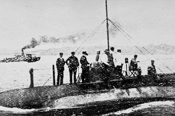 Các thông tin ban đầu cho biết, đây rất có thể đây là tàu ngầm Som của hải quân nước Nga Sa hoàng, bị đắm trên biển Baltic vào năm 1916 trong Thế chiến I. Trên ảnh là thủy thủ đoàn tàu ngầm Som năm 1904