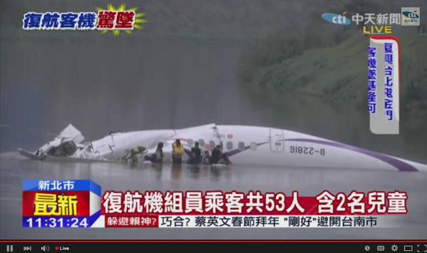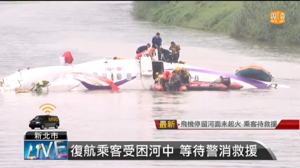 Máy bay đã đâm xuống cây cầu và lao xuống sông Keelung, thành phố Đài Bắc