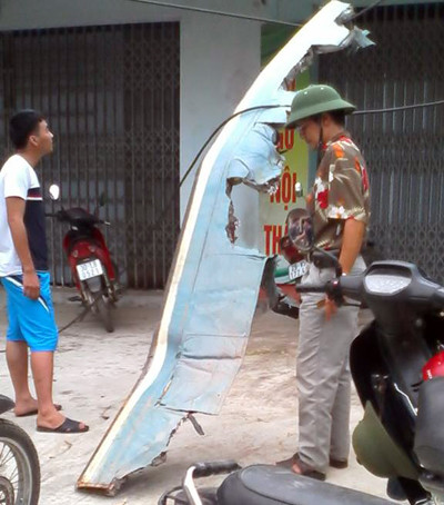 Một mảnh vỡ của chiếc may bay trực thăng bị nạn.