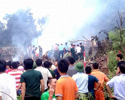 Trực thăng rơi trong vườn nhà dân, cách chợ Hòa Lạc khoảng 500m.