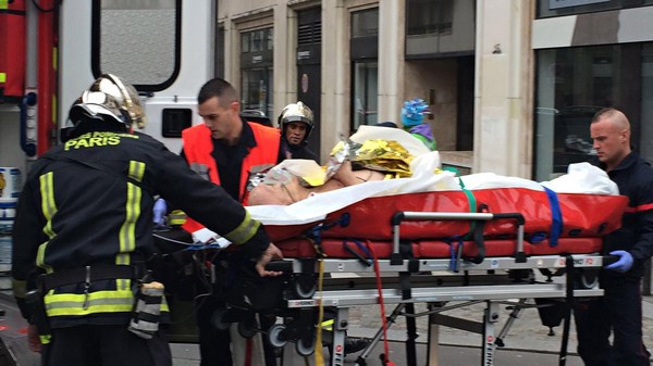 Bộ trưởng Nội vụ Pháp Bernard Cazeneuve (ở giữa bên trái) và thị trưởng Paris Anne Hidalgo (ở giữa bên phải) đã có mặt tại hiện trường.