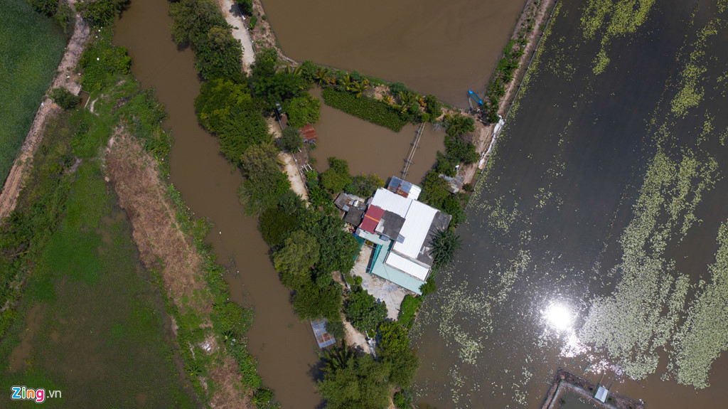 Ngôi nhà của Anh hùng Nguyễn Văn Bảy giữa bốn bề đồng nước.