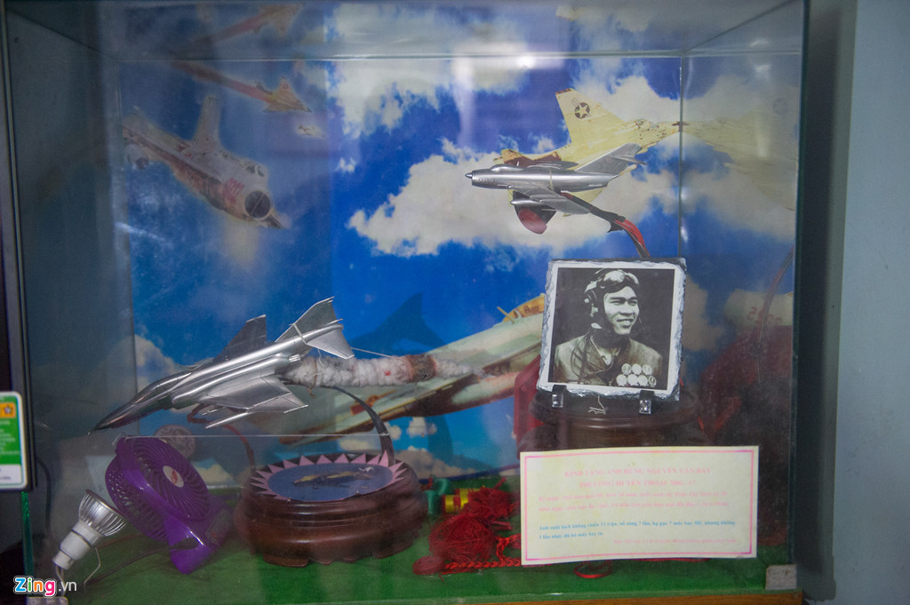 Mô hình chiến đấu không quân thu nhỏ được trưng bày trang trọng tại nhà nhằm ghi nhớ chiến công của một trong những phi công huyền thoại của Không quân Việt Nam.