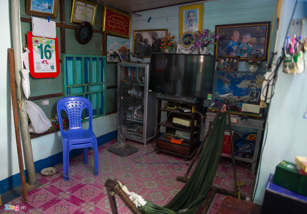 Một góc trong căn nhà của ông Bảy, nơi ông thường nằm nghỉ ngơi, xem tivi.