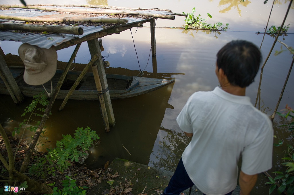 Chiếc xuồng nhỏ vẫn nằm yên đợi ông về. Hàng ngày, ông dùng chiếc xuồng này để đi đổ dớn, giăng lưới trên kênh. Dù đã 84 tuổi, trước khi bị đột quỵ, ông vẫn thường đi làm đồng hoặc giăng bắt cá tôm gần nhà.