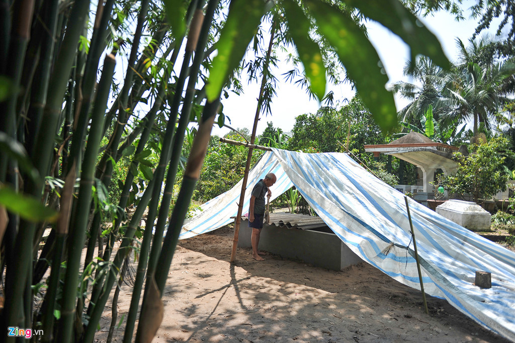 Ông Nguyễn Văn Thái (79 tuổi), người em thứ 9 của ông Nguyễn Văn Bảy thất thần trước sự ra đi của anh mình. Ông dẫn phóng viên vào khu đất vườn - nơi yên nghỉ của người anh hùng.