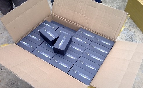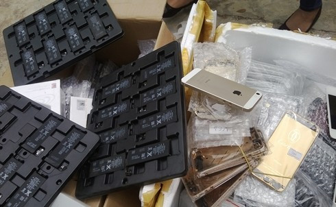 Những thùng linh kiện này được công an quận 7, TP.HCM bắt hôm 19/5. Các trinh sát đã đeo bám các đối tượng vận chuyển 15 thùng hàng đến một ngôi nhà trên đường Trần Xuân Soạn. Tại đây, công an đã phát hiện và thu giữ lượng lớn pin, sạc dự phòng, tai nghe, màn hình, vỏ hộp iPhone4 , iPhone 5 và iPad.
