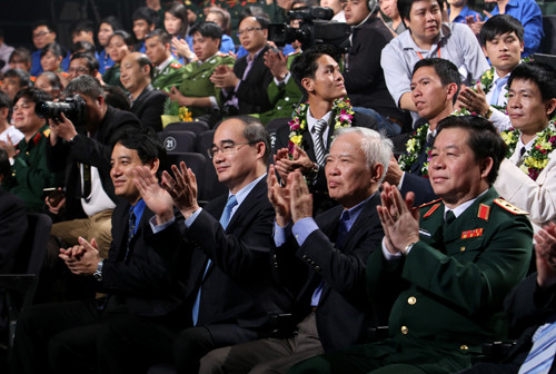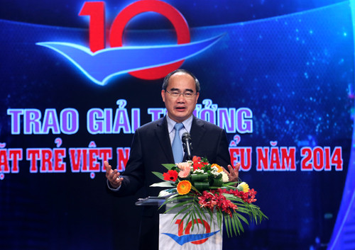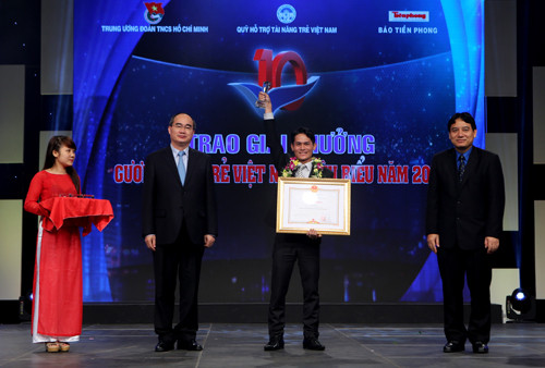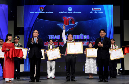 Ủy viên Bộ Chính trị, Chủ tịch ủy ban Trung ương Mặt trận Tổ quốc Việt Nam Nguyễn Thiện Nhân và Bí thư thứ nhất T.Ư Đoàn Nguyễn Đắc Vinh trao Bằng khen Thủ tướng, Cúp, phần thưởng cho 10 Gương mặt trẻ Việt Nam tiêu biểu.