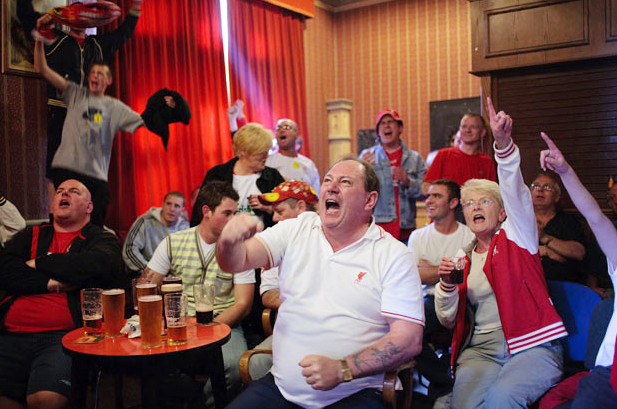 Giải ba thể loại Ảnh gây sốc: Ảnh chụp các phan hâm mộ bóng đá đang hò hét cổ vũ cho một trận đấu trong quán rượu ở Cardiff, xứ Wales (Tác giả Maciej Dakowicz).