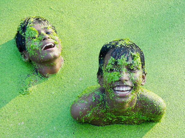 Giải nhất thể loại Niềm vui. Bức ảnh chụp cảnh hai chàng trai đang tắm dưới ao bèo, vui đùa thỏa thích. (Tác giả Nimai Chandra Ghosh, Ấn Độ).